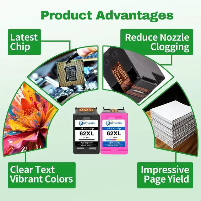 Strict Quality Control: All 62xl ink cartridges black and color for hp printer ink 62 are rigorously inspected at every stage of production to meet quality standards and ensure excellent printing results.