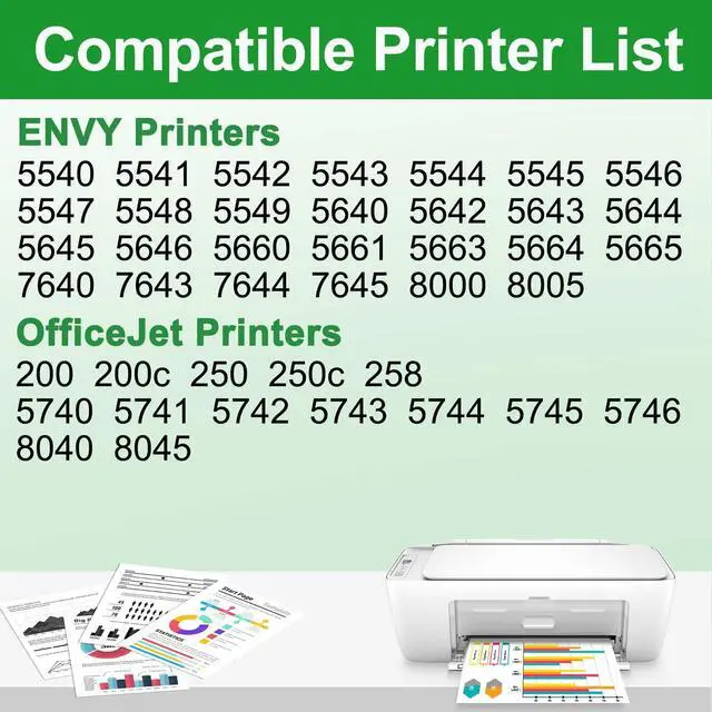 Ink Cartridges Work for: ENVY 5540 5541 5542 5543 5544 5545 5547 5548 5549 5640 5642 5643 5644 5646 5660 5661 5663 5664 5665 7640 7643 7644 7645 8000 8005.