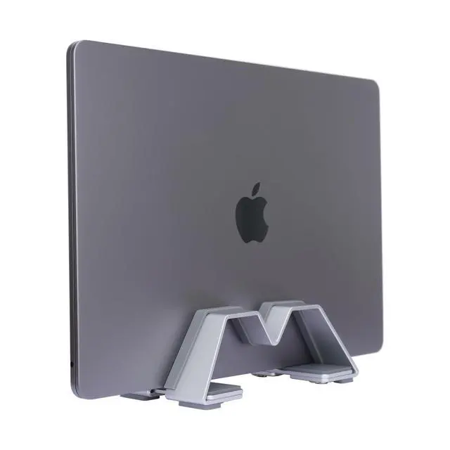 Upgrade your workspace with our Adjustable Vertical Laptop Stand, designed for those who value both form and function. Made from high-grade 6061 aluminum alloy, this stand boasts a 3mm thick, finely sandblasted, and anodized finish that perfectly complements the look of your MacBook or other high-end laptops. The stand's innovative, patented design allows you to easily adjust the slot width with a hidden screw, ensuring a snug fit for any laptop, from slim models to large 17-inch devices. Your laptop stays secure and scratch-free, thanks to custom-molded silicone pads and anti-slip silicone on the base, providing unmatched stability.