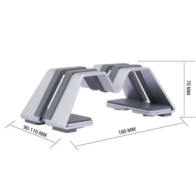 The open base design promotes optimal airflow, preventing overheating and keeping your laptop cool during intensive use. Measuring just 18cm in length, 9.5 -11cm in adjustable width, and 7cm in height, this sleek stand not only saves valuable desk space but also adds a touch of modern elegance to any environment. Elevate your laptop experience with this stylish, functional, and durable stand thats built to last.
