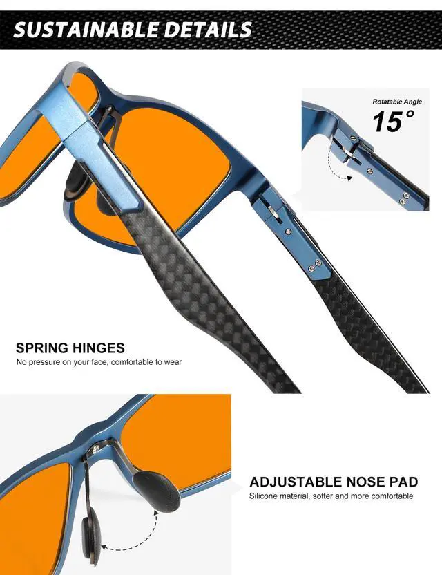 • Premium Temple Material: With superior Al-Mg and carbon fiber composite temple, this type of blue light blocking glasses for men is ultra-light than pure metal frame, also more sturdy. No more worries about broken temples. As more suitable for anyone who often work or play games by the computer, do not miss this pair of practical and classic blue blocker glasses.