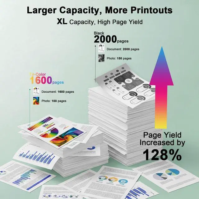 • Print More with XLFor HP 952xl ink cartridges combo pack up to 2000 pages per 952XL black cartridge, 1600 pages per 952XL color (Cyan, Magenta, Yellow) cartridge at 5% coverage of A4 Paper (NON-OEM but higher yield)