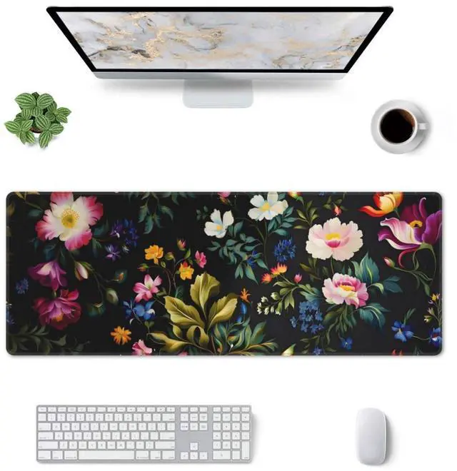 CANFLASHION Desk Pad,Office Desk Mat 31.5"11.8" Large Gaming Mouse Pad,Durable Extended Computer Mouse Pad,Waterproof Thick Big Mouse Pads Non-Slip Rubber Base Office Home Floral Print