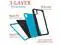 Three part component case, hard plastic front and back bumper case and a soft silicon rubber outer case.