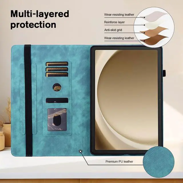 NOTE: NOT for any other tablet model device. ^^ [High quality] Lightweight design and textured surface provide a secure, non-slip hold, enhancing portability safeguard your Samsung Galaxy Tab A9 8.7 Inch 2023 from drops, impacts, and scratches. ^^ [Multi-angle standing] The A11 tablet case benefits from one-handed convenience with an adjustable angle that acts like a stabilizing stand, freeing up your hands while watching, reading or writing, and is a good choice for relieving neck strain. ^^ [Multi-card slot] Built-in card slots can store your business cards, bank cards, notes, bills or other personal belongs while on the go. There is a pen sleeve on the side of the protective cover for placing the pen. ^^ [YHDXUYS Service] We will provide the best service to our customers. If you have any questions after purchasing the goods, please contact us and we will give you quick answers and satisfactory solutions.
