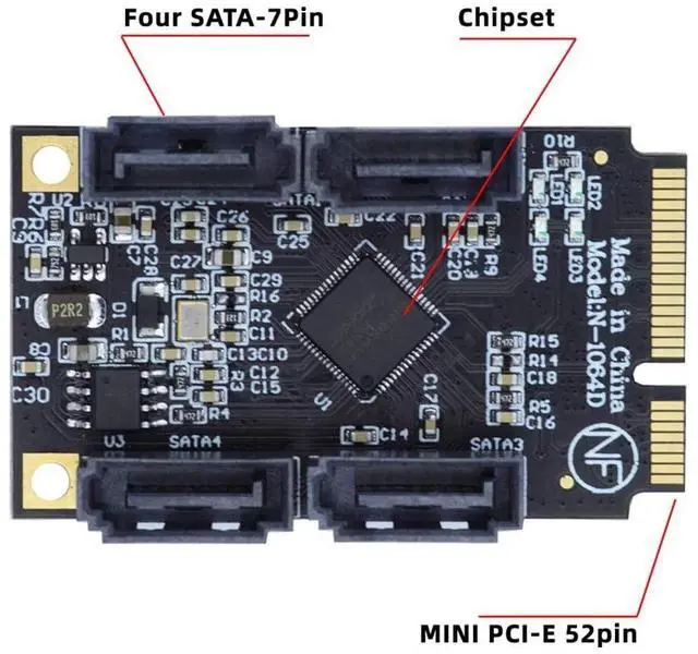 Main control chip: ASMedia ASM1064 ^^ It has four SATA 3.0 interfaces, which can be connected to an SSD solid state hard disk as a system disk, and supports transmission rates of 6.0G bps, 3.0G bps, 1.5G bps.