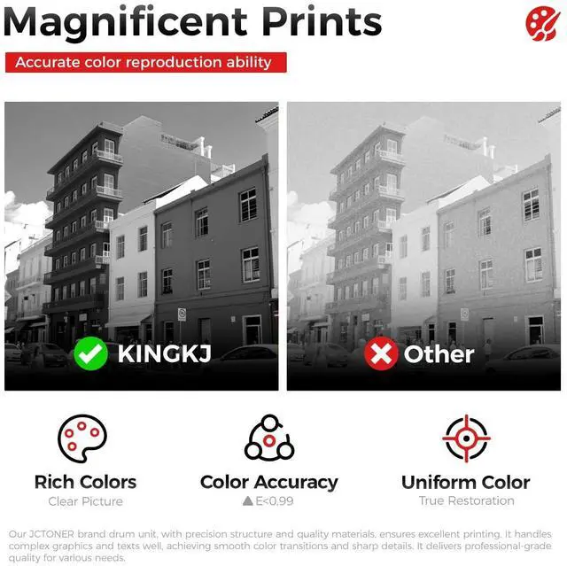 ^^ Latest Chip Version: The KingKJ toner cartridge is equipped with the latest built-in chip, ensuring perfect compatibility between each toner cartridge and the printer. When using the KingKJ toner cartridge to print for your printer, you will receive clear text and sharp images. All KingKJ toner cartridges have undergone strict quality testing to ensure stability and reliability, and have obtained ISO9001 certification. In addition, our product team offers 2-year warranty, 24-hour customer service, and replacement services for defective products.