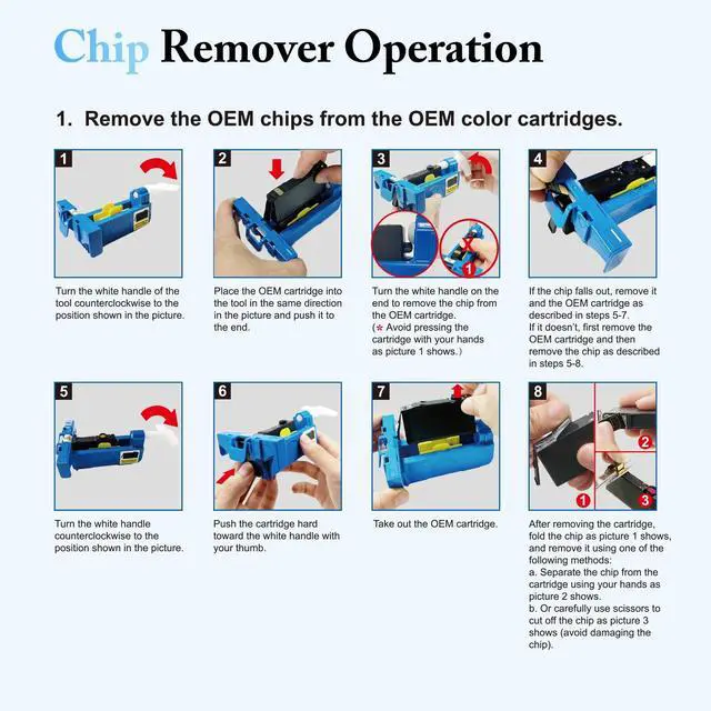 ( ): Make sure you have the OEM 923 ink cartridges for hp printers and follow the instructions to remove the chip from OEM toner and install it to our product. (