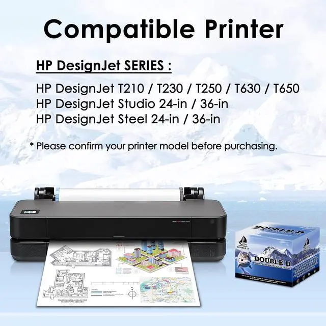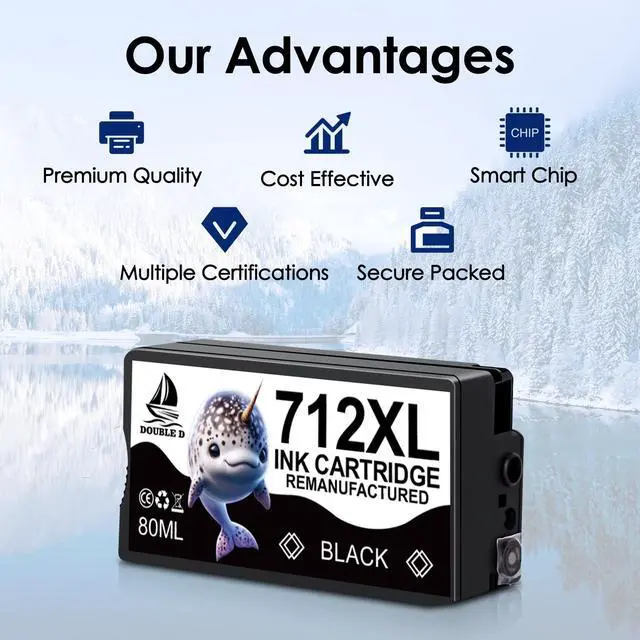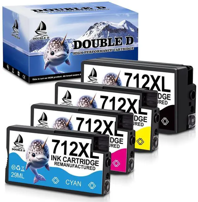 Compatible PrintersDesignJet T210 T230 T250 T630 T650, DesignJet Studio 24-in, 36-in, Steel 24-in, Steel 36-in printers ^^ Packag Contents1 x 80ML Black 712XL, 1 x 29ML Cyan 712XL, 1 x Magenta 29ML 712XL, 1 x 29ML Yellow 712XL (Total 4 Pack) ^^ Advantages Multiple Certifications, Premium Print Quality, Cost Effective, Newest Chip, Secure PackedShow Ink Level ^^ Reliable SupportDOUBLE D offer 24 hours support, please don't hesitate to get in touch with us if you have any questions ^^ Environmental Protection Double D Remanufactured ink 712XL are recycled from the HP 712XL ink cartridge.