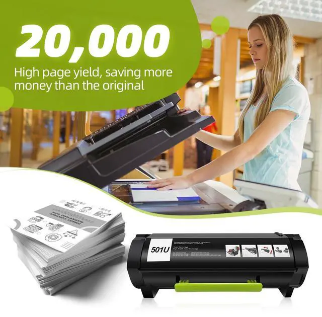 ^^ Page Yield Rating: Up to 20, 000 pages per Remanufacted Lexmark 501UE toner cartridge at 5% coverage black on Letter/A4.