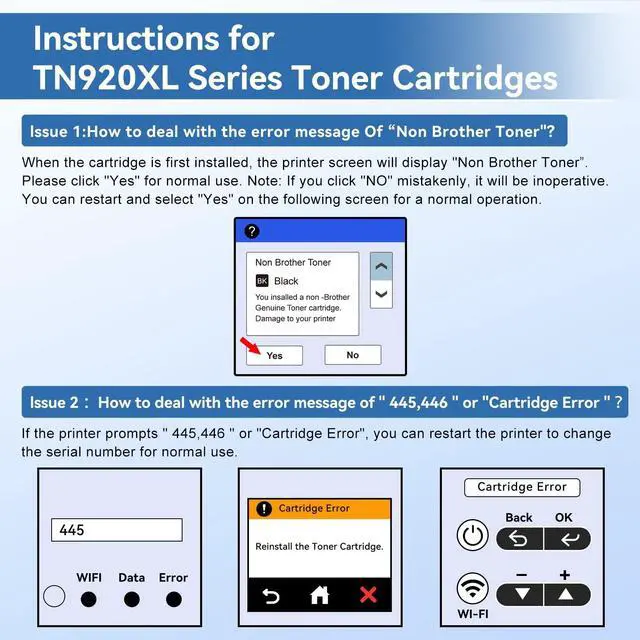 ^^ Tip 2: When the TN920XL toner cartridge is first installed, if the printer prompts Non Brother Toner, please click Yes for normal use.