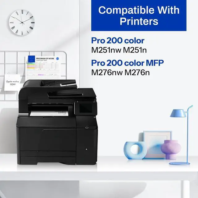 Package Contents: Replacement for HP 131A CF210A Black Toner Cartridges 4-Pack( 1 x CF210A Black Toner, 1 x CF211A Cyan Toner, 1 x CF212A Yellow Toner, 1 x CF213A Magenta Toner ) ^^ Compatible With HP Pro 200 color MFP M276nw M276n, Pro 200 color M251nw M251nw M251n Printer ^^ Page