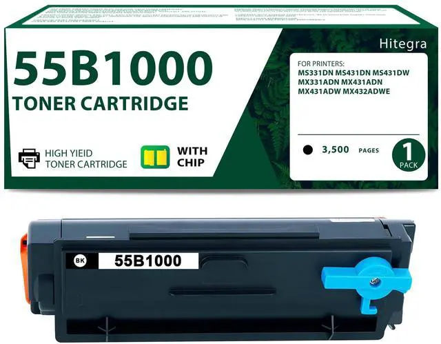 Remanufactured 55B1000 Toner Cartridge - 55B1000 toner cartridge with 1 pack (Black/55B1000), upgraded materials and chip bring the perfect printing experience ^^ High Capacity Yield Pages - MX431adw toner cartridge up to 3, 500 pages for black, based on 5% coverage of A4/Letter ^^ Compatible with Printers - 55B1000 toner cartridge replacement for Lexmark MS331dn MS431dn MS431dw MX331adn MX431adn MX431adw MX432adwe printers ^^ 55B1000 Black Toner for Hitegra - MX432adwe toner can automatically recognize the printer, and press determine key according to the reminder after connecting the printer. Compatible cartridge can provide printing for clear and natural print result ^^ Be Widely Used - Hitegra MX331adn black toner cartridge is widely used in a variety of occasions, including banks, hospitals, schools, companies, shops and so on, whether it is home printing or office printing can be used ^^ Satisfactory Experience - MX431adn toner cartridge offers reliable compatibility and produce clear text and vivid image effect.