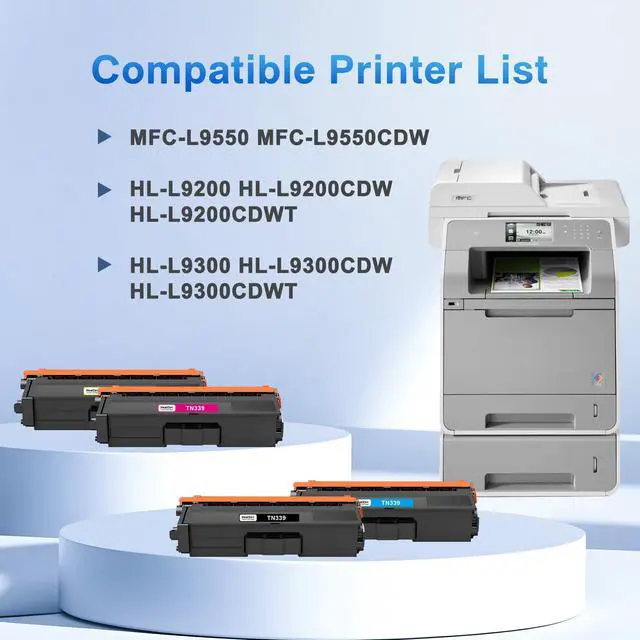 Compatible Printer List: Our TN339 toner cartridge designed replacement for Brother MFC-L9550 MFC-L9550CDW HL-L9200 HL-L9200CDW HL-L9200CDWT HL-L9300 HL-L9300CDW HL-L9300CDWT printer, ensuring perfect alignment and functionality to keep office printers running smoothly, please confirm your printer model before placing the order.