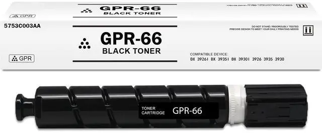 Compatible Printer: Our GPR-66 black toner cartridge (matches original part number 5753C003AA) is fully compatible with Canon ImageRUNNER Advance DX C3926i, C3930i, C3935i printers. Equipped with a smart matching chip, this GPR-66 replacement toner requires no firmware update.