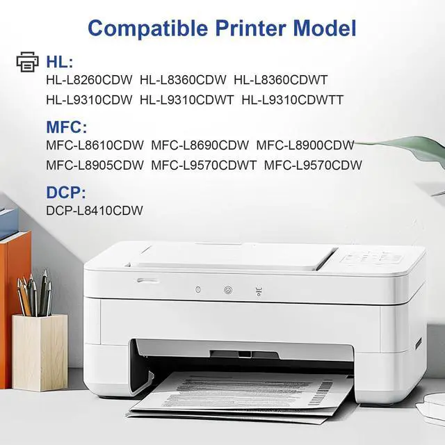 • Compatible Printers: HL-L8260CDN HL-L8260CDW HL-L8360CDW HL-L8360CDWT HL-L9310CDW HL-L9310CDWT MFC-L8610CDW MFC-L8900CDW MFC-L8905CDW MFC-L9570CDW MFC-L9570CDWT Printer