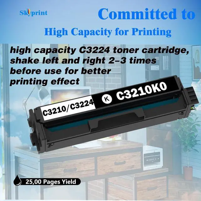 SkyPrint MC3224 toner cartridges come with intelligent chips that automatically recognize and provide printing,Not damaging the machine,Shake the toner cartridge horizontally 2-3 times before use to evenly distribute the toner,providing you with better clear and natural printing effects
