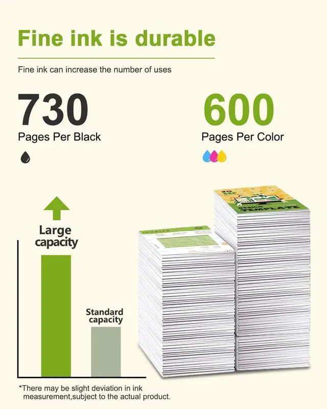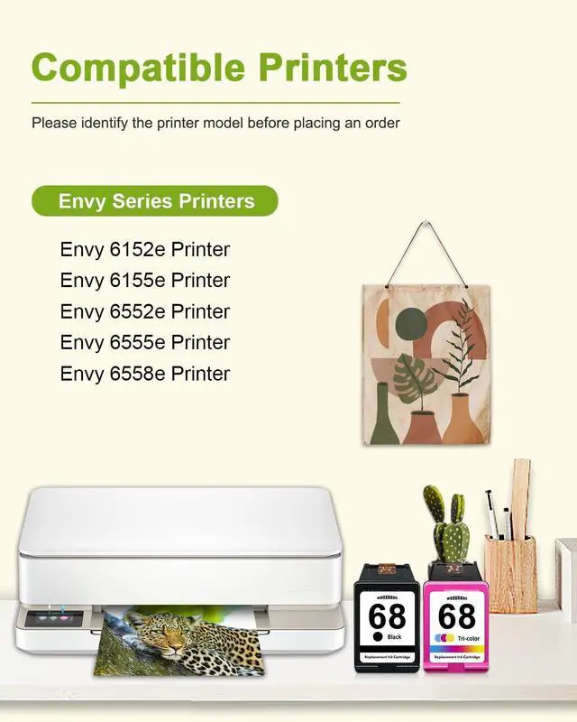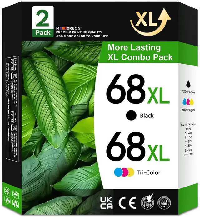 Page Yield: Black is 730 Pages Per 68XL Ink Cartridge, Color is 600 Pages Per 68XL Ink Cartridge (At 5% Coverage of A4 Paper) ^^ Easy Installation & Hassle-Free Printing68XL Ink Cartridges Are Designed for Quick, Effortless InstallationPerfect for First-Time Users. Enjoy Crisp Text and Smooth Performance for Everyday Printing Tasks ^^ Long-Lasting, Vivid Color OutputFeaturing a High-Quality Ink Formula, 68XL Ink Cartridges Deliver Vibrant, Fade-Resistant Prints That Stay Sharp and True Over TimeIdeal for Preserving Documents and Photos
