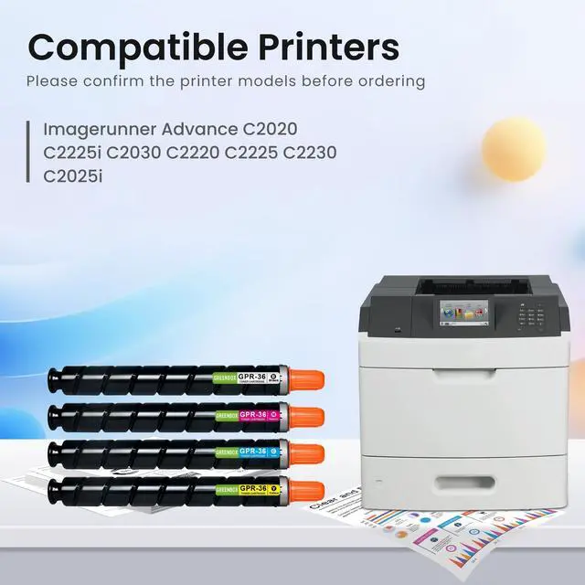 Page Yield: Up to 23, 000 pages per GPR-36 black cartridge, up to 19, 000 pages per NPG-52 / EXV34 color cartridge at 5% coverage (Letter/A4) ^^ High-quality toner cartridges can provide clear text and graphics, print the color effect you want on the paper