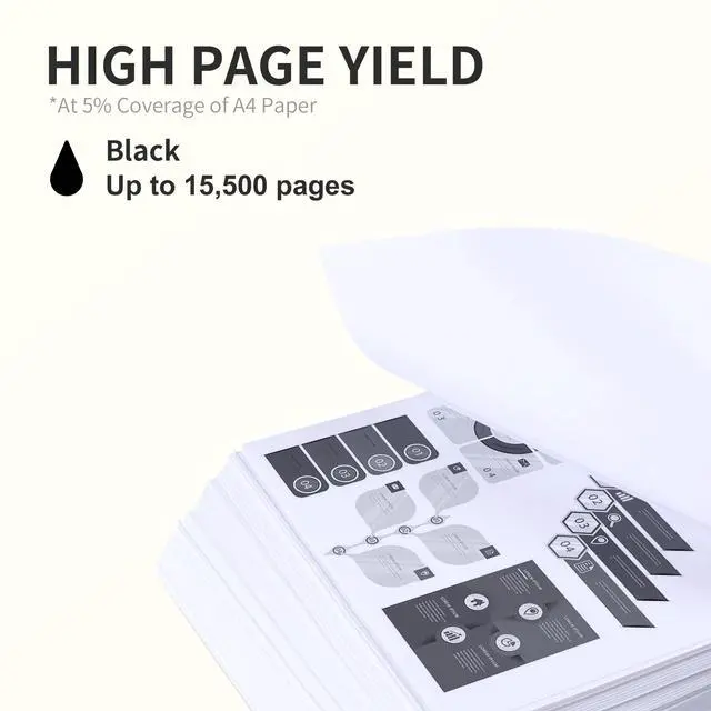 ^^ PAGE YIELD: Based on the industry standard 5% page coverage, the black cartridge yields approximately 15, 000 pages.