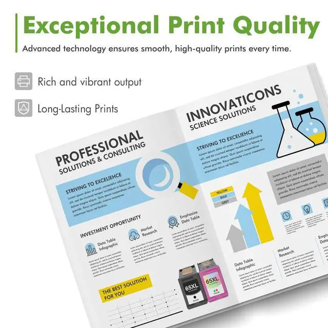 High Page Yield: Up to 750 pages for each 65xl black ink and 450 pages for each 65xl color ink (Letter/A4, at 5% coverage) ^^ Compatible for Officejet ENVY 5000