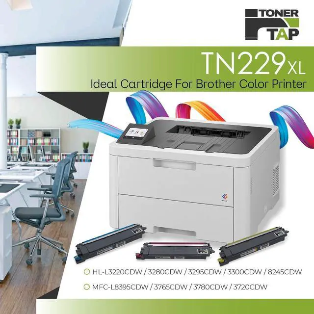 ^^ Eco-Efficient Toner CartridgeThe TN229XL toner cartridges deliver high toner utilisation and a low waste powder rate, supporting sustainable printing with reliable performance. ^^ Wide Brother Printer CompatibilityThe TN229XL ink cartridges work with brother HL-L3220CDW, HL-L3280CDW, HL-L3295CDW, HL-L3300CDW, HL-L8245CDW, MFC-L3720CDW, MFC-L3765CDW, MFC-L3780CDW, and MFC-L8395CDW printers.