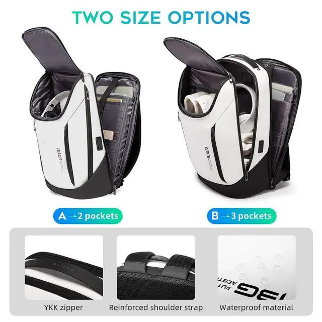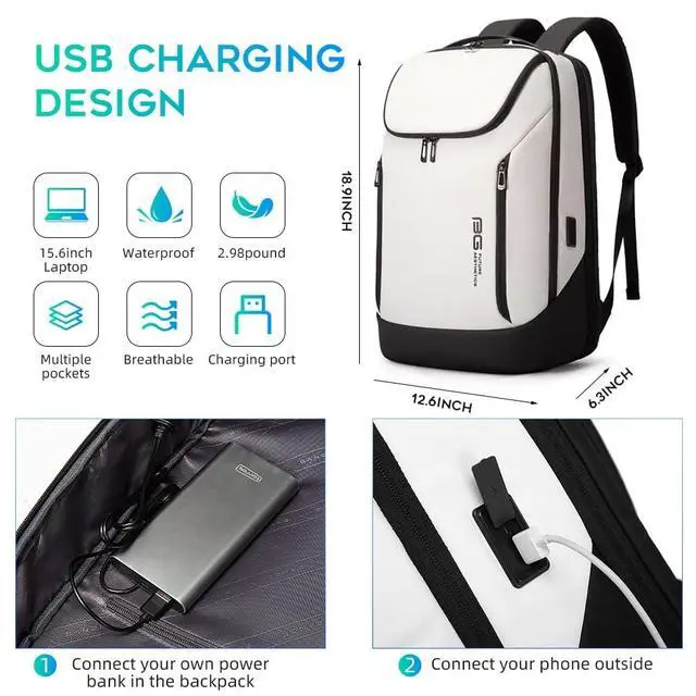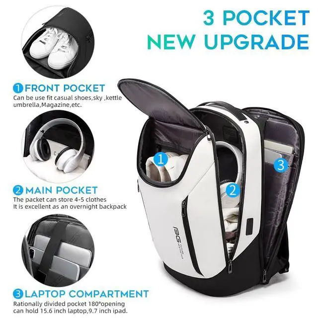 Waterproof material: Bange laptop backpack made of high-density coated oxford fabric not only waterproof and resistant but also scratch-resistant ^^ 180 opening pocket: The front pocket can be use fit casual shoes, sky, kettle, umbrella, Magazine and Other goods, the backpack have 5 pocket, the main pocket can contain 4-5 chothesthe laptop pocket can 180opening can hold 15.6 inch laptop and the pocket division reasonable can meet your daily needs, Two front pocket can meet your daily needs, You can place anything you have to have any items, such as wallet, pen, convenient sign, etc ^^