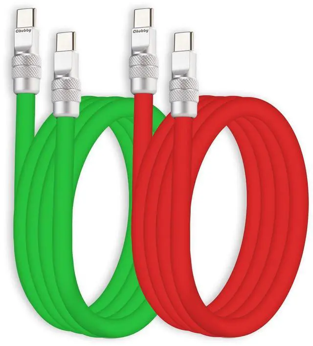 chubbycable Couple Chubby 2 Pack 240W USB C Cable Extra Thick Silicone Fast Charging Cable Compatible with iPhone 17-15 Series iPad Galaxy Series, Green+Red, Type-C to Type-C, 19.6FT