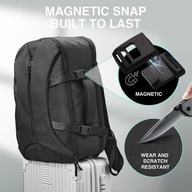 A side handle and luggage strap offer multiple carrying optionswear as a backpack, hand carry, or attach to a suitcase. ^^ [Durable & Water-Resistant] Made with heavy-duty 1000D Oxford fabric (1680D reinforced front) and 290D polyester lining for superior wear & water resistance. The anti-scratch interior protects valuables, while self-locking zippers & magnetic buckles add security and convenience. ^^ [Perfect Travel Companion] Fits airline carry-on size (20"x13"x9") for overhead bins. Ideal for flights, business trips, or daily commutes. The lightweight yet sturdy design ensures durability without extra weight. Stay organized & travel stress-free!