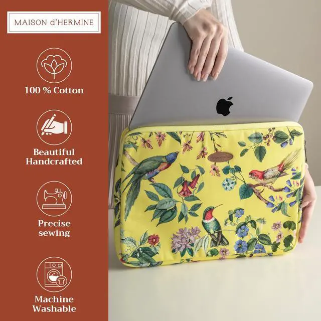 Maison d'Hermine Laptop Sleeve Upto 15.5 inch Stain and Water Repellent Cotton Canvas Easter Gifts - Eden - Yellow