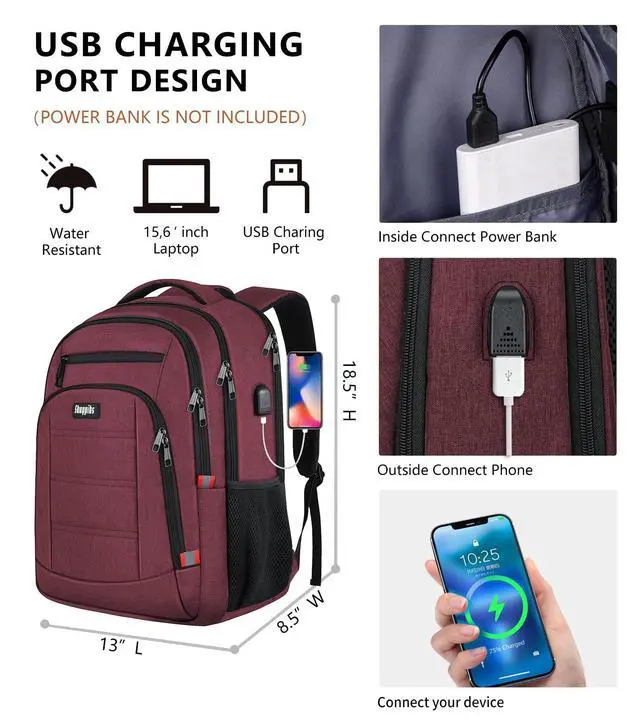 Large Capacity & Multi-PocketsThe separate laptop compartment is suitable for 15.6 /15/14/13 inch Macbook/Laptops. The spacious main compartment can hold books, clothes for 1-2 days, chargers, headphones, and other daily necessities. The front compartment has many pockets, pencil cases, and key hooks to neatly store various small items. The elastic side pockets are convenient for carrying water bottles and umbrellas. Whether for work, leisure, or travel, it can meet your storage needs. ^^ Comfortable & BreathableThe comfortable airflow foam cushion back design, thick and soft ventilation padding, lightweight materials have good heat dissipation and non-stickiness, providing maximum back support and reducing discomfort when carrying for long periods of time.
