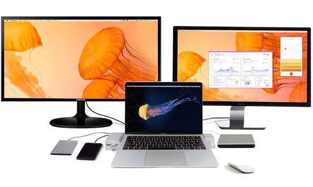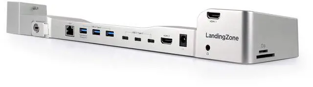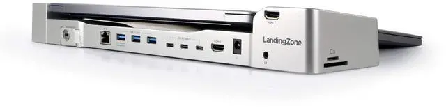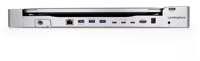 Designed for the 2018-2020 13-inch MacBook Air that has limited ports, this LandingZone Docking Station is designed to give users their connectivity options back. With an incredible 14 ports, the LandingZone is the essential companion to any MacBook Air. PORTS & FEATURES - 3 USB 3.1 Type-C Ports (Data Only / No Video) - 2 USB 3.1 Type-A Ports (Data Only) - 1 USB 3.1 Type-A Port (Data & 1.5A High Speed Charging) - HDMI 1 Port (3840 x 2160 @ 60Hz) - HDMI 2 Port (3840 x 2160 @ 30Hz) - Gigabit Ethernet Port - SD Card Slot - Micro SD Card Slot - Two-way Audio Port - Built-in Kensington Security Slot - 3-Color LED Status Indicator Light - 96W LandingZone Power Adapter (powers the MacBook and LandingZone)