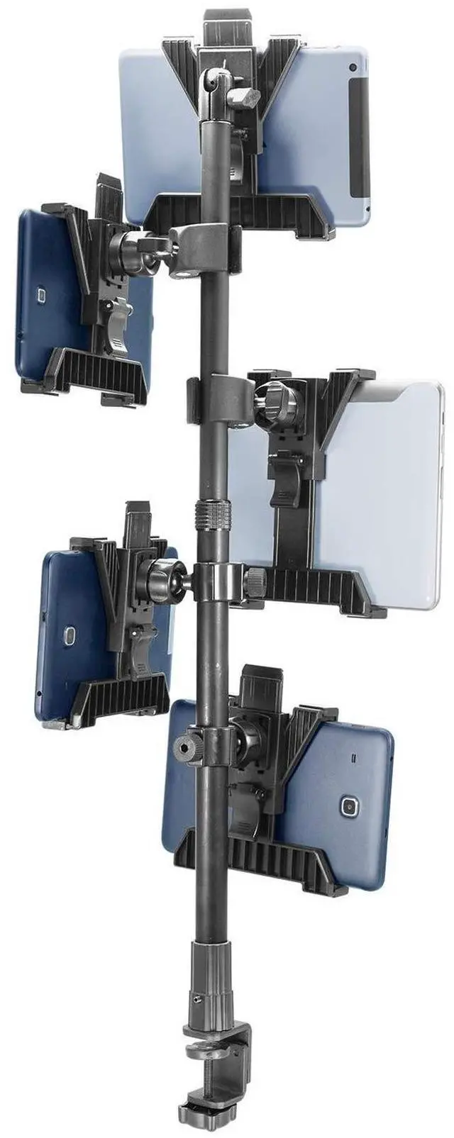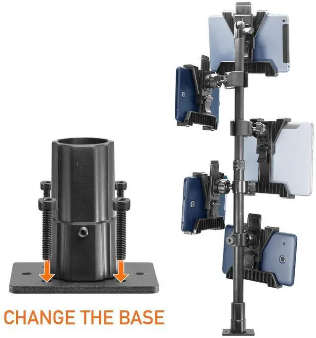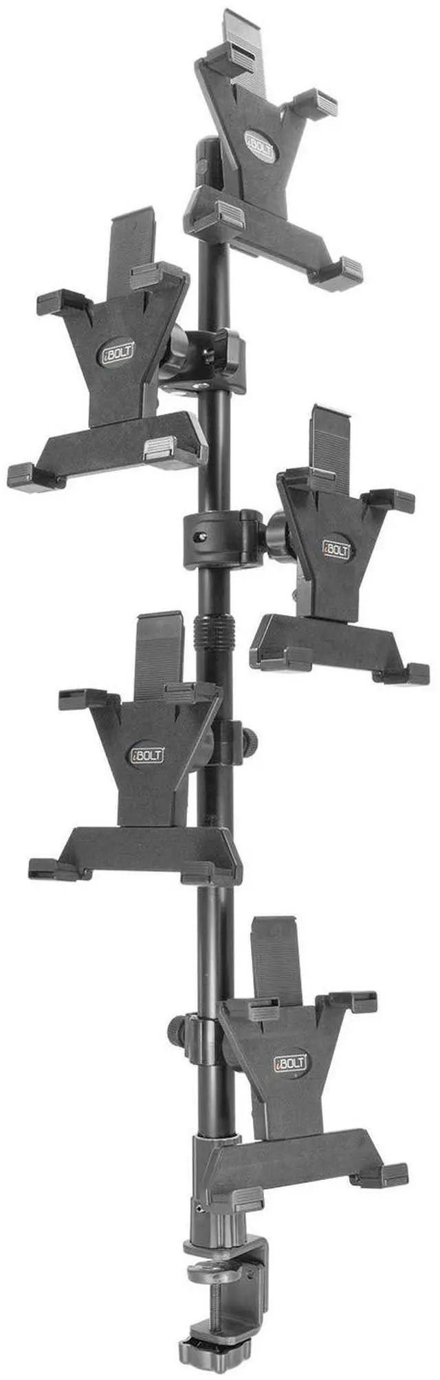 HEAVY-DUTY MULTI-TABLET COUNTER & CLAMP MOUNT The Tablet Tower Point of Purchase is a versatile multi-tablet mount designed to securely hold multiple tablets. This mount is ideal for restaurants and busy workspaces needing to clear counter space while managing multiple delivery and order applications efficiently. ^^. DUAL MOUNTING OPTIONS Includes a clamp mount that fits flat surfaces up to 2.5 wide and a drill base mount for permanent installation on countertops, offering flexible mounting solutions for various setups. ^^ STURDY & SECURE HOLD Each tablet holder features four points of contact to keep devices firmly in place while running delivery and order management applications such as DoorDash, Uber Eats, Postmates, Yelp, and more.