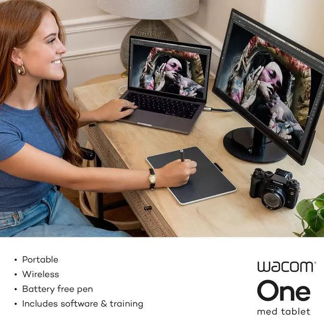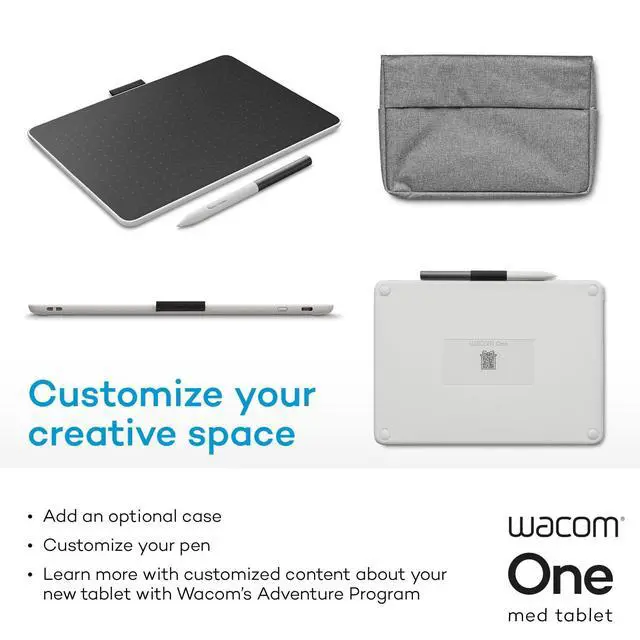The Wacom One drawing tablet helps the digital arts beginner or visual thinker illustrate, edit images, or design with a natural feel of pen and drawing paper while providing advanced digital capabilities. Whether you're sketching, painting, creating animations, or communicating your ideas, this medium ( 9.92" x 7.13" x 0.31" ) Bluetooth drawing pad helps bring your artistic visions to life. Featuring a thin and light design, this creative pen tablet is perfect for anyone with creative dreams but limited desk space. Built-in Bluetooth allows you to enjoy the convenience of wireless connection to your computer - or connect the digital drawing tablet to your computer with the included USB-C cable.