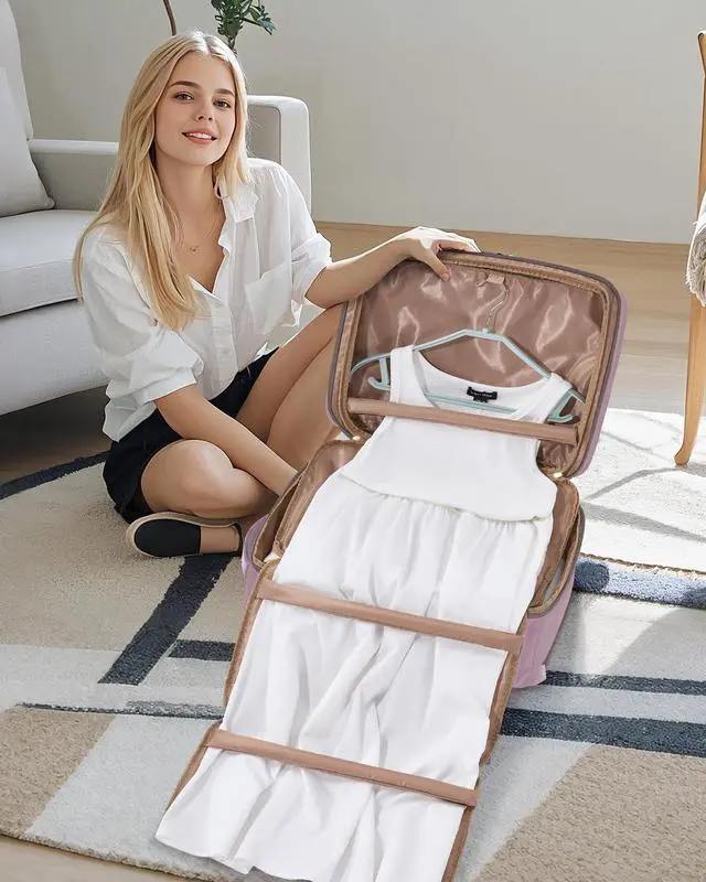 Travel Backpack&Garment Bag This innovative backpack seamlessly combines a travel backpack with a garment bag, featuring foam roll bars that securely hold suits, shirts, and dresses in place, keeping them wrinkle-free during trip and transit. ^^ Spacious 40L with Organized Packing With a 40L capacity and 3 extra packing cubes for a 3-5 day trip, this carry on backpack efficiently store clothes/shoes, cosmetics/toiletries, a 17.3" laptop and more, keeping your items neatly arranged. ^^ Multiple Pockets for Convenience Equipped with 10 pockets, including 3 front pockets for quick access to essentials, such as passport, rechargeables, tissues and more.