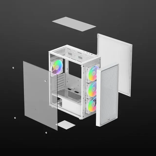 High-transparency side panel glass, supporting customised interior design within the computer case. ^^ Gamma C50 pc case equipped with four ARGB case fans, whilst the front panel features a mesh ventilation panel to facilitate more natural airflow. ^^ Chassis Dimensions 385*200*450mmMotherboard support MATX/ITX. ^^ For AIO radiators, support up to 360mm; For air cooler, support up to 160mm in height; For pc fan, supports 120mm, with fan positions to suit your requirements. ^^ GPU Length Limit 340mm ^^ Power Supply Length Limit 205mm (with HDD), 410mm (without HDD) ^^