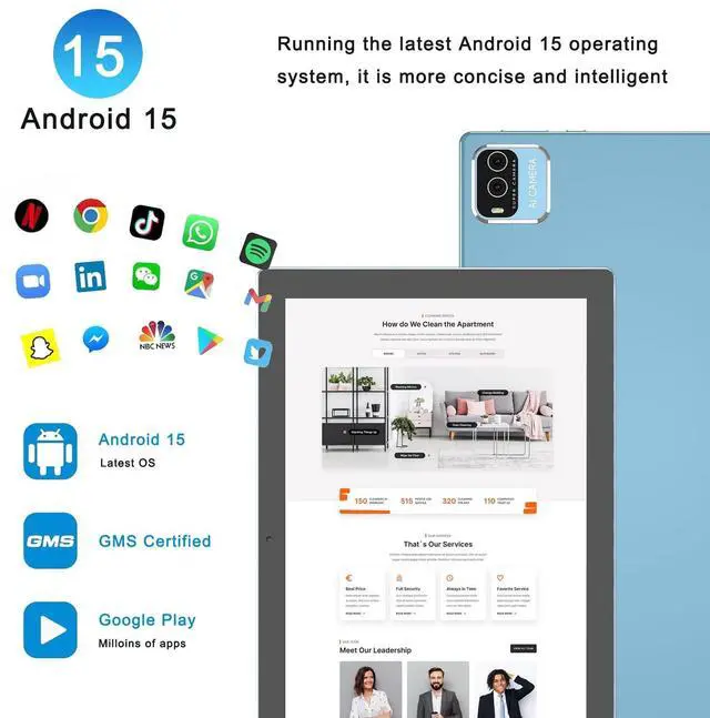 Android 15 High Performance Tablet Tablet adopt the latest Android 15 System. Faster than Android 15. And compatible with more aplications. Powerful Performance Quad Core CPU up to 2.4Ghz Speed, allows you to play games, watching movies, surfing internet, workin