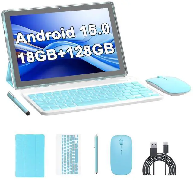 2 in 1 Android Tablet 18GB RAM+128GB ROM Tablets 10 inch Android 15 Tablet Set, Tablets with Keyboard Case Mouse Stylus, 10.1 IN Touch Screen 2MP+8MP Dual Camera 6000 mAh battery Tab 5G WiFi-6 Tableta
