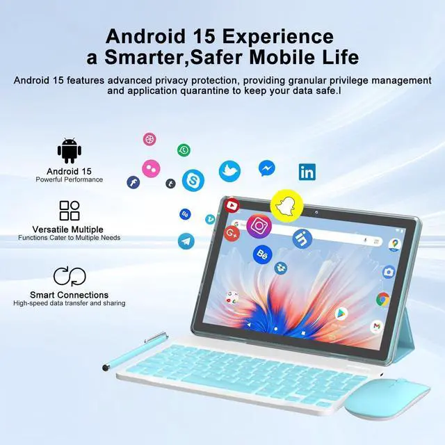 2 in 1 18GB (including 12GB extended memory) +128GB Tablet 10.1 inch Android 15 Tablet Set Tablets with Keyboard Case wireless Mouse Stylus 10.1 IN 1280*800 HD Touch Screen 8MP Dual Camera Games Tab Wi-Fi BT Tableta PC