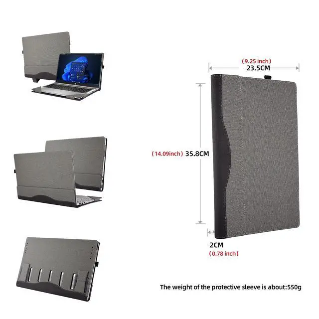 The case size is: 14.09X 9.25X 0.78 inches. Please check your model number for purchase. It does not work with other 15.6 -inch machines. Don't mind buying at will. You can contact us to recommend a protective case for your machine. Thank you. ^^ The case is made of high-quality PU leather, which has a beautiful appearance and a delicate feel; The soft microfiber fleece inner layer better protects the laptop. ^^ Simple installation and removal, anti-scratch protective cover, providing 360-degree protection for the machine ^^ The abrasion-resistant exterior and shock-resistant interior protect your device from dust, impacts, bumps, scratches, scratches, and spills. ^^ Available in a variety of colors. Suitable for various life and work scenarios, such as video conferencing, watching movies, business office...