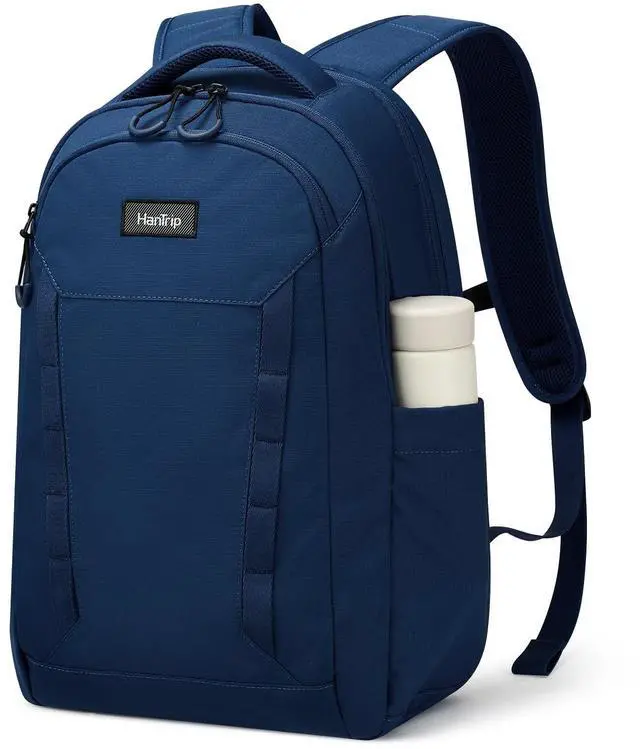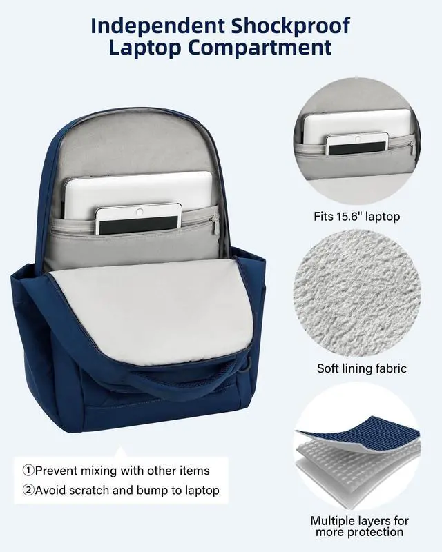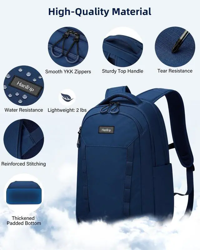 As large capacity backpack, its well-organized compartments keep travel essentials and daily items neatly stored and secured. ^^ Durable BackpackMade of high-quality polyester fabric, this computer backpack for men is lightweight but sturdy, scratch-resistant, wear-resistant and water-resistant. Features durable YKK zippers with pull tabs for smooth operation, reinforced triangle stitching at stress points, plus delicate embroidered logo detailing. The main compartment's thickened bottom padding keeping personal items safe and secure, making it a long-lasting choice among laptop backpacks. ^^ Comfortable Ergonomic DesignBackpack for travel features sturdy thickened top handle, as well as padded breathable back panel and shoulder straps for all-day comfort.
