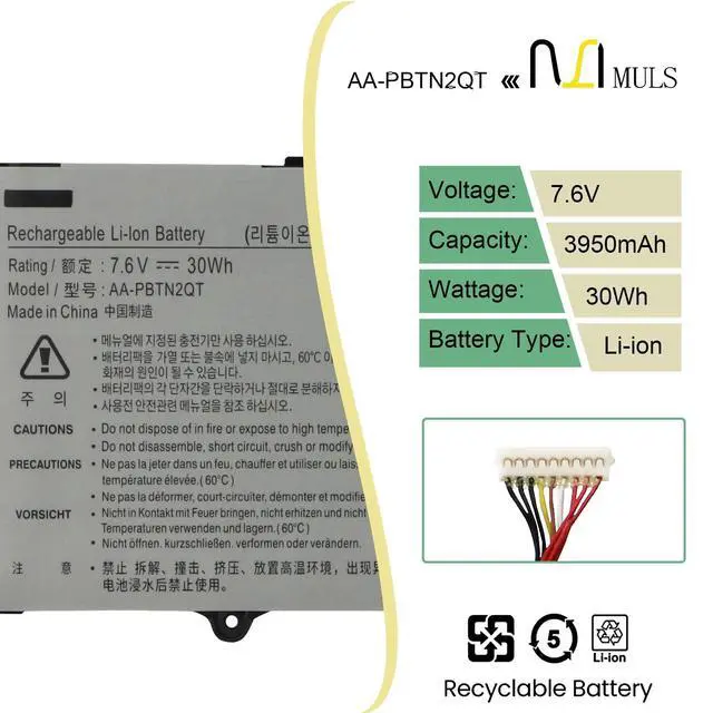 NT900X5Y Series: NT900X5Y-LD5W NT900X5Y-KD2S. ^^ Compatible with Part NumberFit for AA-PBTN2QT. ^^ Safety Above AllOur batteries are certified by CE, FCC and RoHS to ensure your safety, and packed with prevention measures like short circuit, overheat and overcharge protection. Our laptop batteries are made with premium materials and circuit boards to ensure performance and durability. ^^ Give Customers the