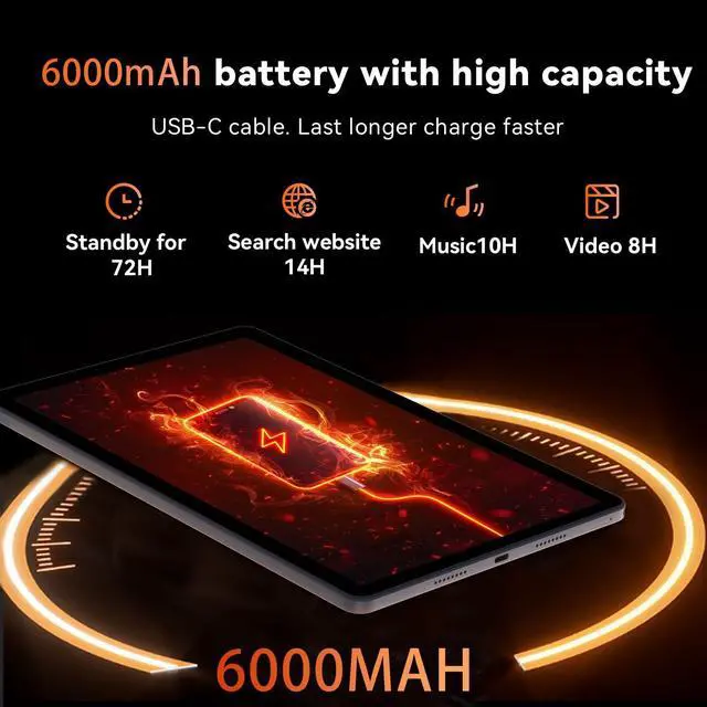 ^^ High-Performance Octa-Core Processor: Experience top-tier performance with the powerful octa-core CPU and a long-lasting 6000mAh battery. This tablet ensures energy efficiency for hours of streaming, gaming, and browsingmaking perfect for users of all ages. ^^ Stunning 10.1 ''