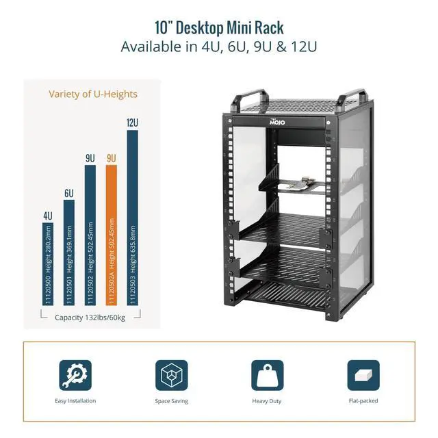 Height: This mini rack is designed for efficient equipment organization, featuring a space-saving 10-inch width and standard 9U height - ideal for desktops, home labs, small offices, or AV setups ^^ Versatile