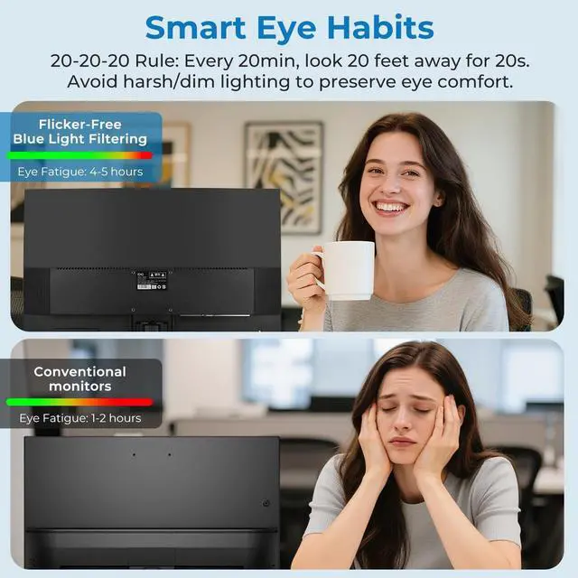 DescriptionWhy choose ours display for dry eyesSoothe your eyes and stay productive with our Smart Eye-Care Display for Dry Eyes designed to minimize discomfort and protect your vision during long work or study sessions. Featuring advanced flicker-free technology, blue light filtering, and anti-glare coating, this display reduces visual stress and helps maintain natural moisture in your eyes. With its adaptive brightness, color temperature control, and ergonomic design, it offers personalized comfort for every environment day or night. Perfect for digital professionals, gamers, or anyone seeking an eye-friendly display solution.