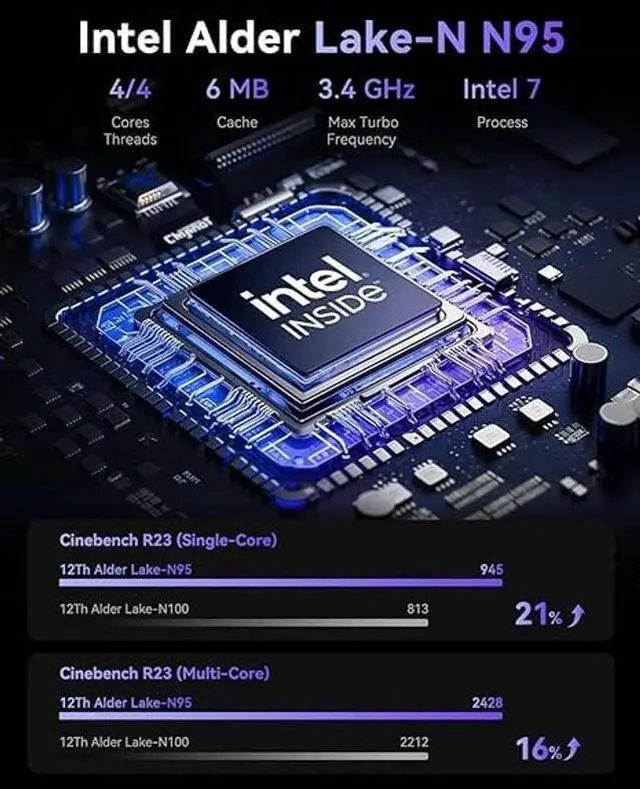 • [NEW GENERATION Twin Lake N95 Faster & Stronger] The ACEMAGIC Vista V1 N95 mini pc uses Alder Lake N95 (1.7GHz, up to 3.4GHz, 4 cores, 6MB cache), delivering +35% CPU and +78% GPU performance compared with (N100/N5105/N5100/N5095 models. This mini computer ensures smooth multitasking, office apps, and 4K streaming.