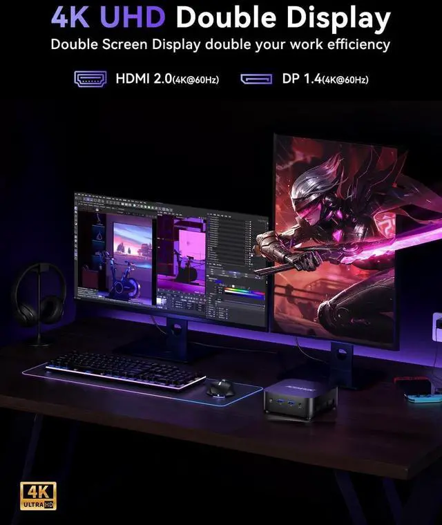 • [16GB RAM 512GB SSD Expandable to 2TB] With 16GB DDR4 and a 512GB M.2 2280 SSD, this mini desktop pc responds quickly to heavy multitasking, large files, and multi-tab browsing. Expand up to 2TB with NVMe/SATA SSD, turning it into a powerful mini pc win 11 pro for work and storage needs.