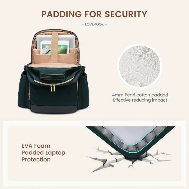 Bags College Backpack: The dedicated separate laptop compartment with cushioned cotton sewn around, has a dedicated separate 18.4 -inch laptop pocket, a 9.7 -inch iPad slot, fits your laptop perfectly and is padded for extra protection. It makes carrying your laptop so much easier. Professional and well made for work, business, travel, commuting, college, teacher, nurse, daily use as a practical gift for women. ^^
