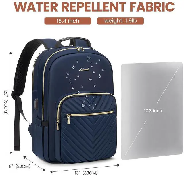 LOVEVOOK Laptop Backpack for Women 18.4 inch,Cute Womens Travel Backpack Purse,Professional Laptop Computer Bag,Waterproof Work Business College Teacher Bags Carry on Backpack with USB Port,Navy Blue