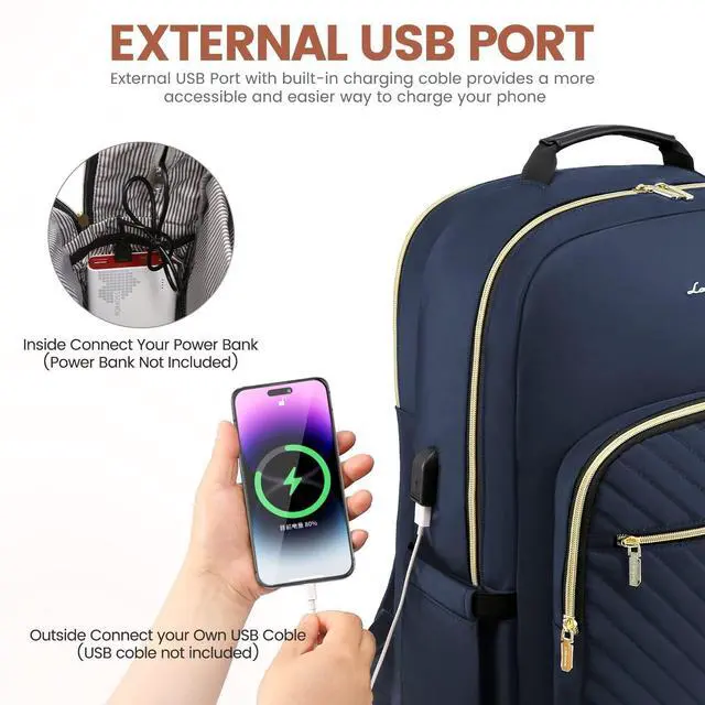 USB Charging Port: Perfect size to fit under the seat on airplane and attaches to the raised handle of the suitcase for easy traveling. With inside charging cable and outside USB port, the carry on backpack provides a more convenient and easier way to charge your devices. No need to keep power bank on the hand, make life easier. ^^ No-Risk-Purchase &